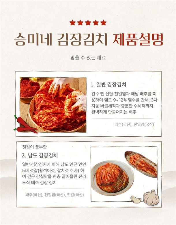 전라도 전통의 김치를 지향하며 철저한 위생과 품질로 다가갑니다.