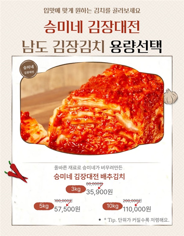 승미네김치는, 김치타운 서울지사의 새로운 이름 입니다.